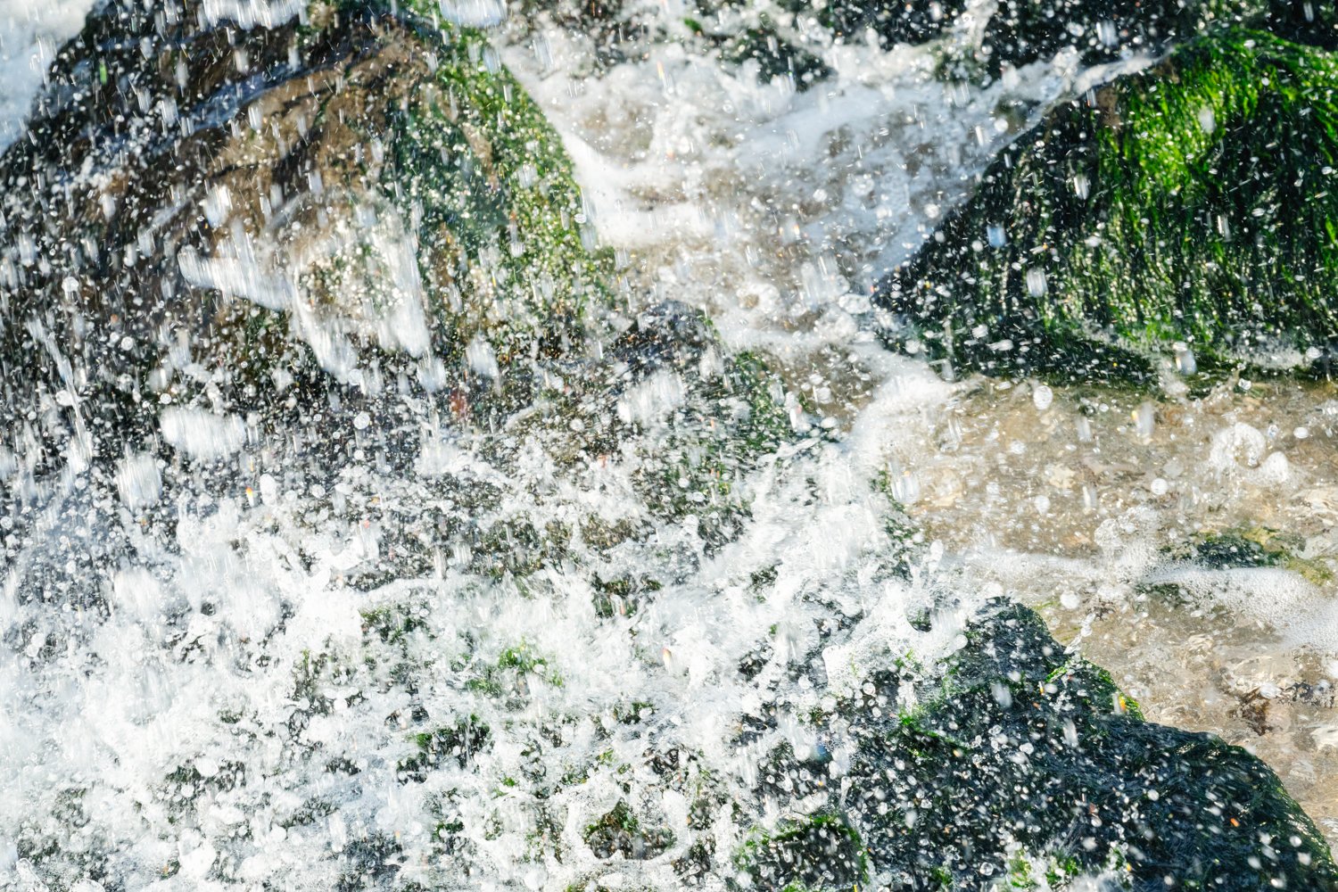 Waterdruppels die zweven. Op strand gefotografeerd bij de pijp en op een dam.